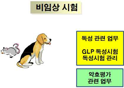 질병에 대하여 약효가 있는 물질을 발굴하면 우선 인체에 적용하기 전 단계로 동물에 대한 약효 평가와 독성 평가를 수행하는 단계이다.