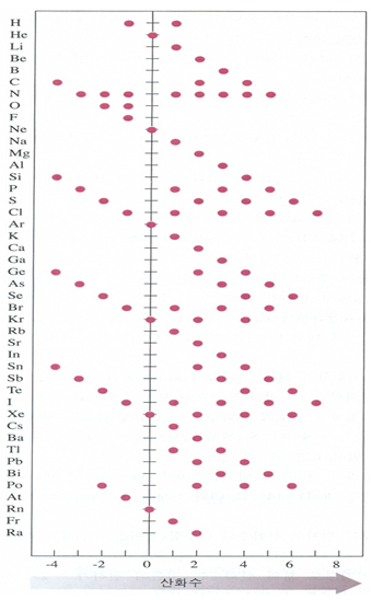 ② 화합물 상태에서 알칼리 금속(ⅠA족 원소)의 산화수는 +1이고 알칼리 토금속(ⅡA족 원소)은 +2이다.