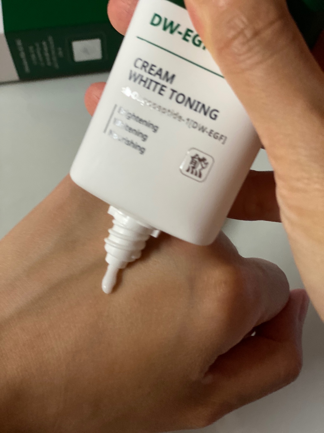 제품 개봉후 바로 손등에 발라보았어요 부드럽게 튜브에서 크림이 나오고, 아미노산으로 이루어진 펩타이드 성분이라 역쉬 피부에 잘스며듭니다.