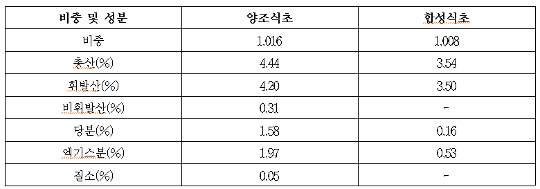 아세트산을 3~5% 함유하는 산성조미료이다.