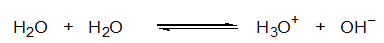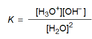 이러한 평형은 순수한 물과 모든 묽은 수용액에서 이루어지며 이때의 평형상수식은 다음과 같이 표시된다.