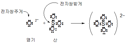 반응식(4)는 전자쌍을 주는 것이 분명하도록 다음과 같이 표시할 수도 있다.