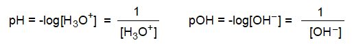 [H3O+] 또는 [OH-]의 농도값은 정수가 아니어서 사용하는데 불편할 때가 많다. 따라서 이는 대수 표시로서 정수의 편리한 숫자로 표현할 수 있는데 그 관계식은 다음과 같다.
