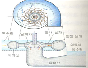 1) 모터를 회전시켜 물을 터빈 안으로 보낸다.