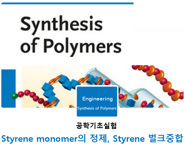 정제된 단량체 styrene에 개시제 AIBN(azobis(isobutyronitrile))을 첨가하여 벌크중합을 진행하고, 고분자 polystyrene에 대해 알아본다. 이 과정에서 개시제의 농도와 중합 온도에 따른 반응 메커니즘을 이해한다.