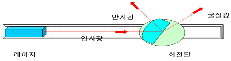2) 레이저의 광이 회전판 0-0도에 정확히 입사하도록 미세하게 정렬한다.