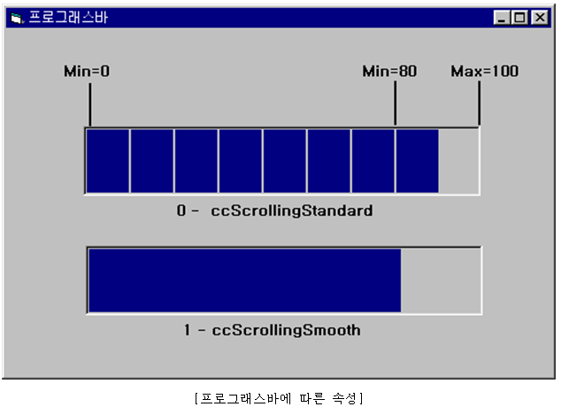 프로그래스바 컨트롤은 진행상태를 막대 그래프 형태로 보여주는 시각적인 컨트롤입니다