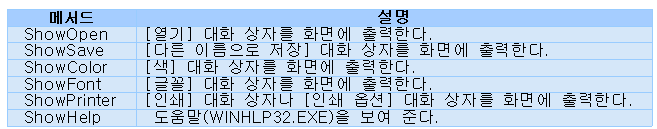 공용 대화상자를 화면에 나타나게 하려면 두 가지 방법이 있습니다. 첫 번째 방법은 메서드를 사용하는 방법입니다.