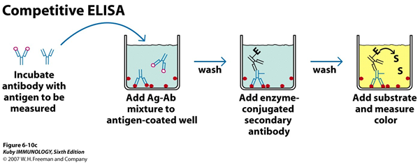 ‘Competitive ELISA’에서는 원래 시료에 들어 있던 항원의 농도가 높을수록 흡광도는 낮게 기록될 것이다.