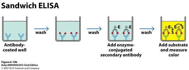 효소결합 면역흡수 분석법, 즉 ELISA는 효소의 작용을 이용해 특정효소와 결합할 수 있는 면역글로불린(immunoglobulin)의 존재를 확인할 수 있다.