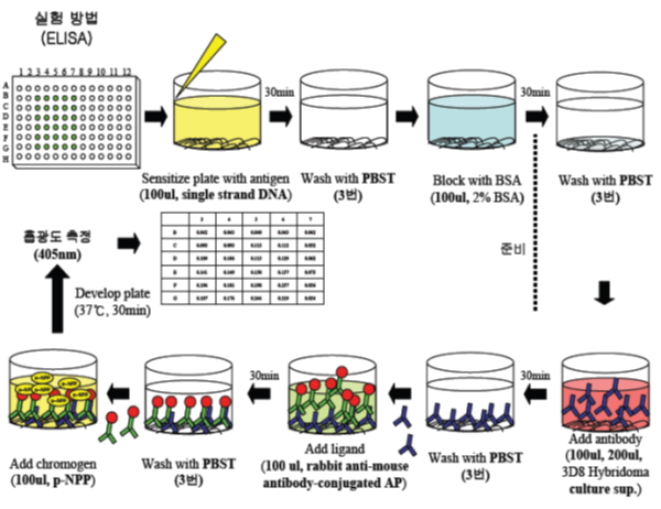 Antigen-antibody 반응을 이용하여 항체가 특정 항원을 인식하여 결합하는 원리를 이용한 것이다.