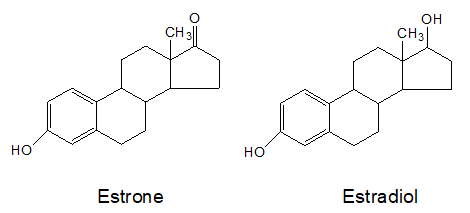 다른 종류의 여성 호르몬으로 에스트라디올(estradiol)과 에스트론(estrone)이 있으며 이들 호르몬을 통털어 에스트로젠(estrogene)이라 부른다. 이 에스트로젠의 구조는 스테로이드의 것과 비교할 때 네 개의 고리 중 하나가 방향족 고리를 가진 것이 다른 점이다.