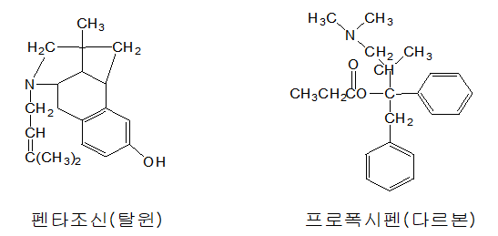 모르핀의 가장 효과적인 대용제는 1931년 처음 소개된 메페리딘(meperidine)으로 이 약품은 모르핀보다 습관성이 적다. 현재 사용되고 있는 비교적 강한 두 가지 진통제는 펜타조신(pentazocine : 상품명 Talwin)과 프로폭시펜(propoxyphene : 상품명 Darvon)이다. 펜타조신은 습관성이 약간 있는 반면, 프로폭시펜은 습관성이 없는 것으로 보인다. 그러나 프로폭시펜 사용을 비판적으로 보는 사람들은 이 약이 너무 남용되고 있어서 다른 아편제들 보다 더 위험하고 진통효과도 적다고 말한다.